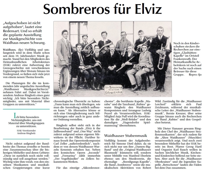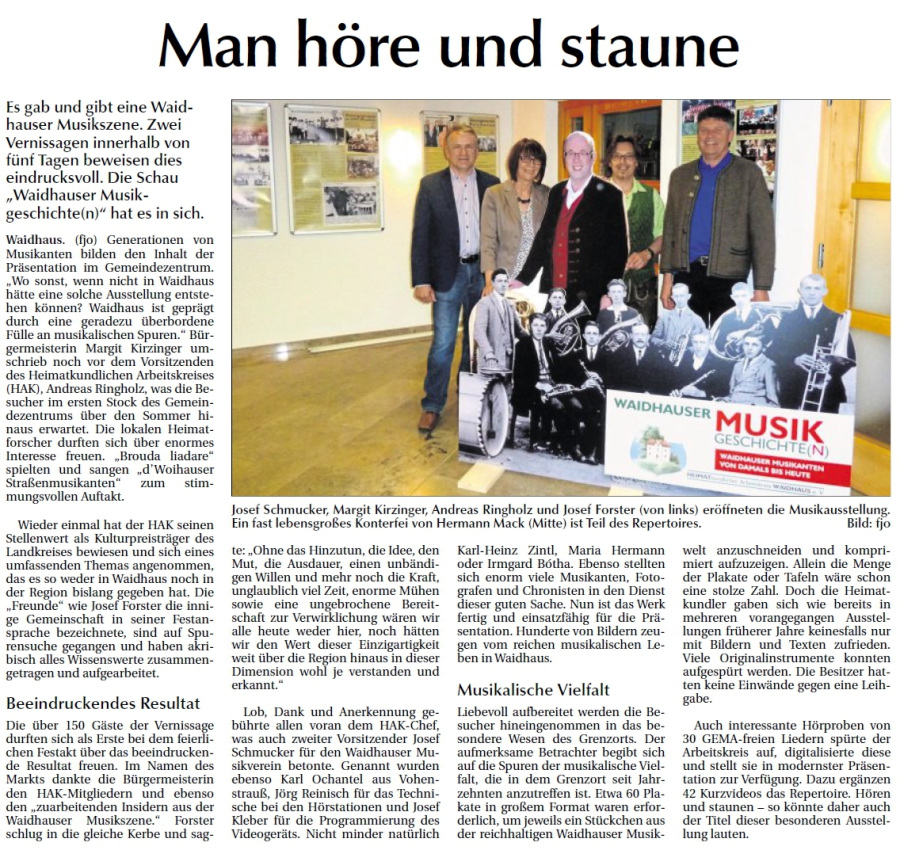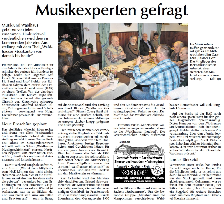 Aus dem "Vohenstraußer Anzeiger" des Jahres 1928 stammte die Begebenheit mit den vier böhmischen Musikanten, die in einem kleinen Ort zwischen Vohenstrauß und Waidhaus allerhand durchmachten. Was es